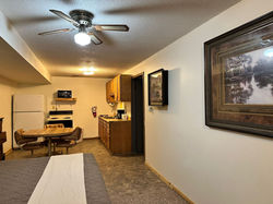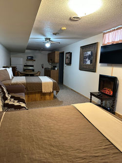$75/1 person, $15 for each additional adult, ​located in main lodge, full kitchen, 3 queen beds, full size futon, ​(can be rented with adjoining door to room # 3 to make 3 bedrooms with 2 baths for $115/ 2 people).​